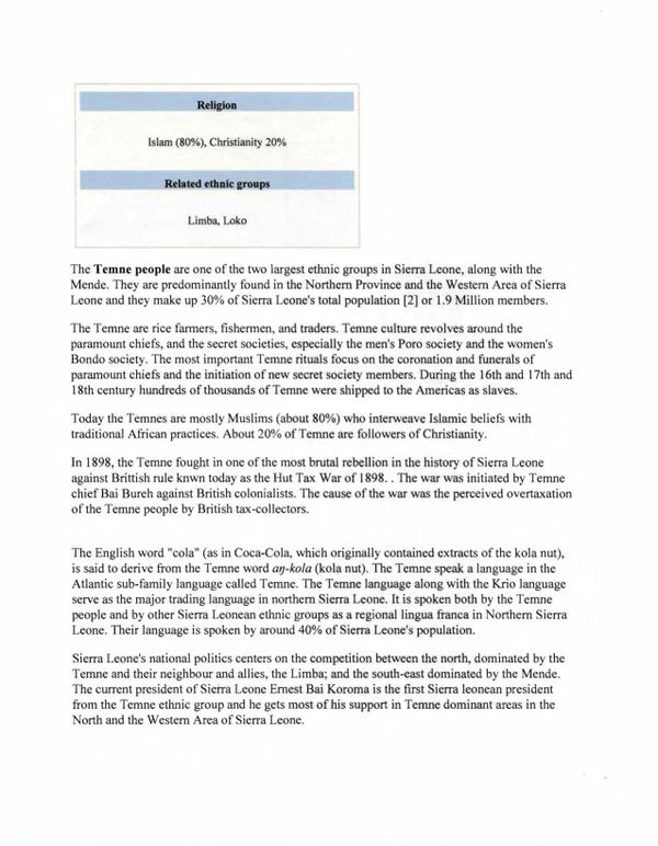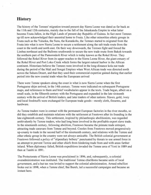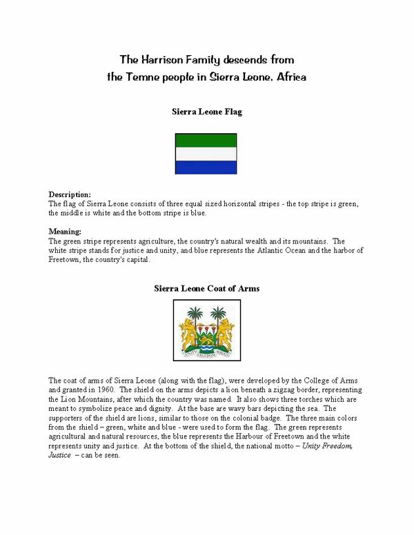 In 2009, we had Edward R. Harrison's DNA analyzed to determine the male lineage of the Harrison Family using African Ancestry's PatriClan test. At that time Edward was the oldest living male descendant of John Harrison. The results show that we descend from the Temne people in Sierra Leone, West Africa. (Right Click on computer to Download) (Press on Smartphone to Download)